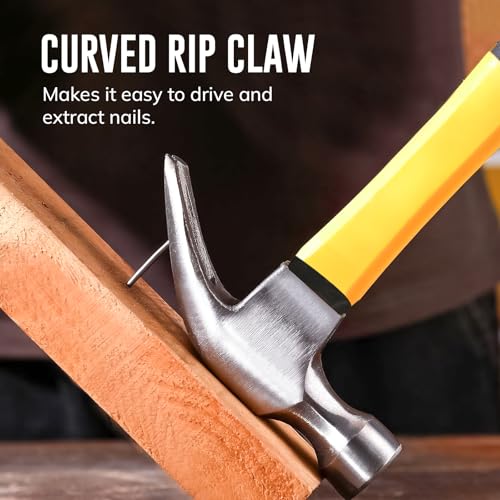 CARBON STEEL HEAD: Made with a mirror-polished carbon steel head, this hammer’s head weighs 16ozĨg and is up to 20% stronger than mild steel; its curved rip claw makes it easy to drive and extract nails