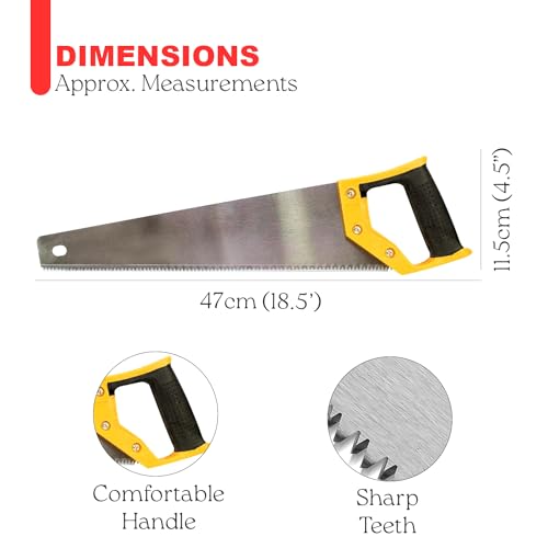 16″ Handsaw – Quality Steel Blade with Comfortable Grip, 46cm Hand Saw for Cutting Wood, Insulation, Hardwood, Softwood, Chipboard, Plywood and MDF