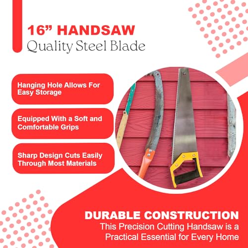 📐👀🛠️📐 DURABLE CONSTRUCTION – Made of high quality steel this 16-inch handsaw is built to last through many cuts and projects!