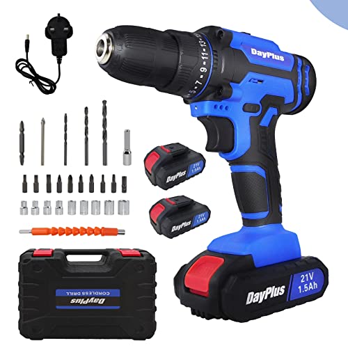 Qimu 21V Cordless Power Drill, Handheld Screwdriver Drill Set with 25+1 Torque Setting, 1.5AH Li-ion Battery&Fast Charger, 2-Gear Combi Hammer Safety Lock 3/8” Chuck Driver Kit Carrying Case