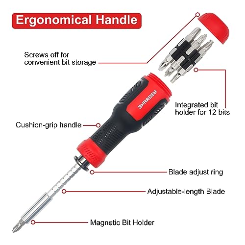 SHARDEN Multi Screwdriver 13-in-1 Screw Driver Adjustable Screwdriver Set Multitool All in One with Torx Security, Flat Head, Phillips, Hex, Pozidriv and 1/4 Nut Driver