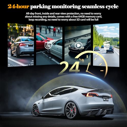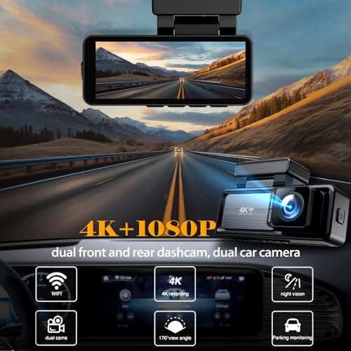 4K+1080P DUAL Dash Cam Front and Rear, Dual Car Camera, 3.2” IPS Dashcam for Cars with FREE 64GB Card Included,Night Vision, 170°Wide Angle, WDR, 24H Parking Mode with Loop Recording and G-sensor