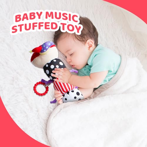 🍀Multi-sensory Experience: This toy offers a multi-sensory experience with a built-in music box, BB device, crinkle paper, and rattle bell, captivating your baby’s attention and fostering their cognitive development.
