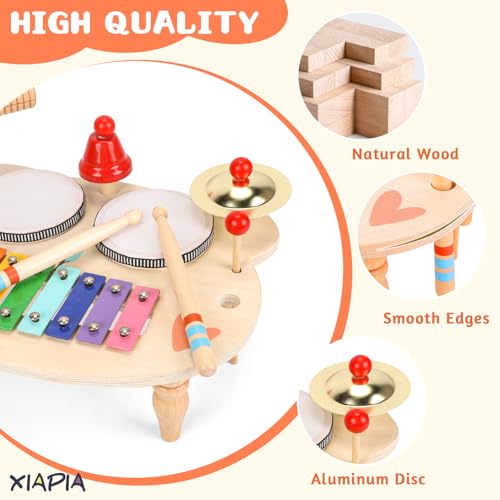 XIAPIA Kids Drum Kit, Baby Drum Musical Instruments Toys for 18 Months, Toddler Drum Set with Wooden Xylophone for Kids, Percussion Instruments Musical Toys Birthday Gifts for Children Boys and Girls