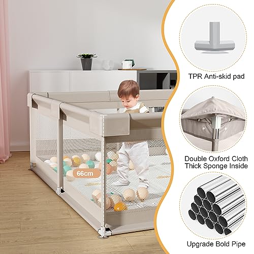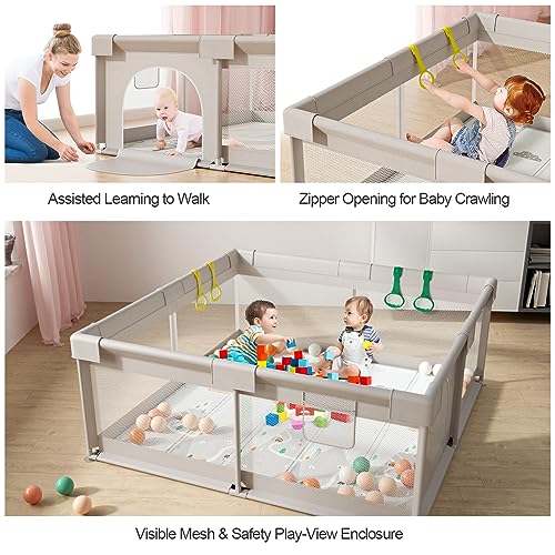Baby Playpen, Fence for Baby with mat,59x59inch Play Pen for Baby and Toddlers, Kids Play Pen for Indoor, Large Infants Play Yard with Hand Pull-Rings