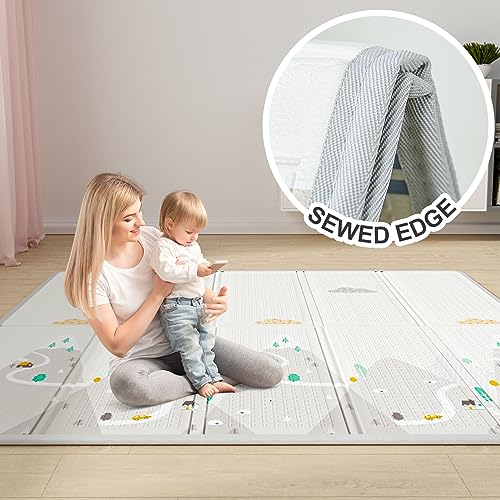 🎁Extra Large Size Play pen: The playpen(59inch Gray with mat) size is 59*59*27inch,it about the size of a full-size bed, it can accommodate two or three babies and several adults. The playpen gives your little one a lot of space to play, crawl, walk, etc, and never feels like he is ‘caged’ up or bored. Parents can lie down with your children or go about your own business without having to keep an eye on them all the time