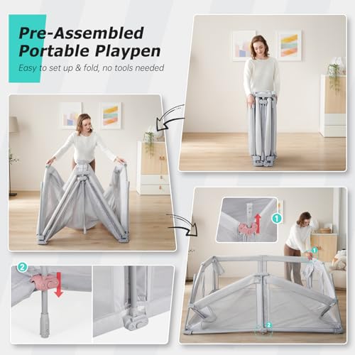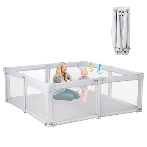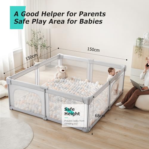 Specification: Doradotey Playpen Foldable Playpen for Baby and Toddlers, 2 Zip Doors, Mesh Walls, Padded Frame, Play Pen with Travel Bag, 150x150x68cm Playard, Light Grey