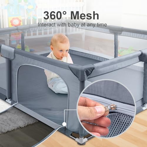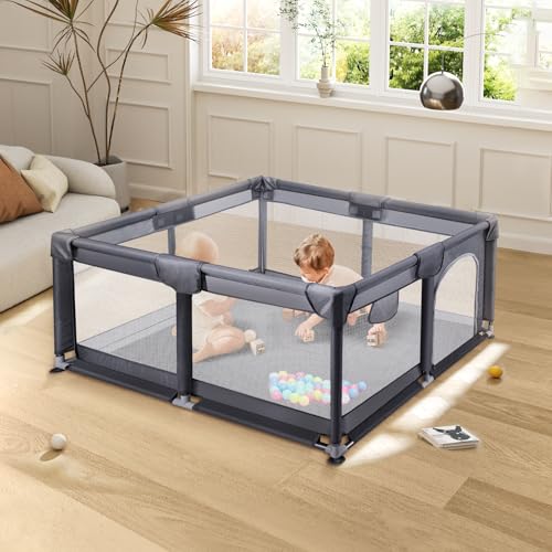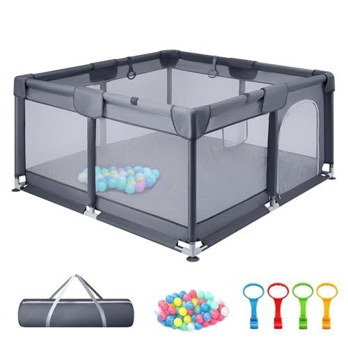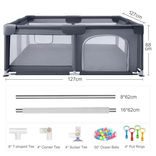 Specification: Supernic Baby Playpen for Babies and Toddlers with Mesh Walls, Ocean Balls & Pull Rings Included, for Indoor & Outdoor Use, Toddler Fence – Breathable Mesh, Extra Large Play Yard (Grey, 127x127cm)