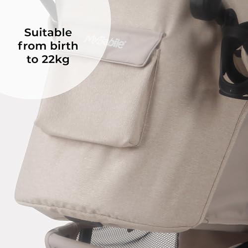 My Babiie MB30 Pushchair – from Birth to 4 Years (22kg), Easy Compact Fold, Large Shopping Basket, Adjustable Handle, Stroller Includes Cup Holder, Rain Cover – Oatmeal