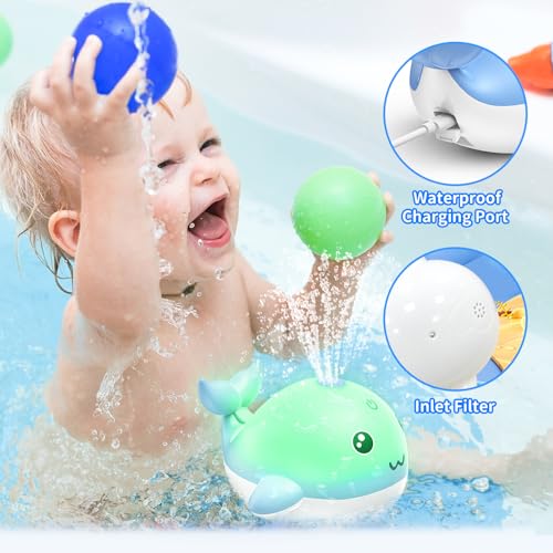 Specification: PHNIXGAM Upgraded Rechargeable Baby Bath Toy with Easy Charging, LED Light Up Whale Bath Toy Sprinkler Bathtub Pool Water Fountain Toy for Infant Toddlers Kids, Blue