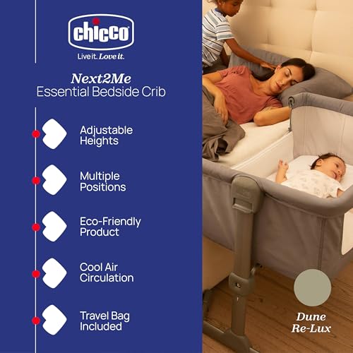 Specification: Chicco Next2Me Essential Infant Cosleeping Crib, Sustainable, Compatible with Different Beds, Adjustable Height, Tiltable, Good Air Circulation, Mattress and Bag Included, 0-6 m