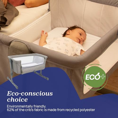 The cosleeping crib Chicco Next2me Essential with all the features you can look for and everything you need to sleep peacefully with the baby next to you. It is also a more sustainable choice, as 62% of its softgood fabric is made by recycled polyester.