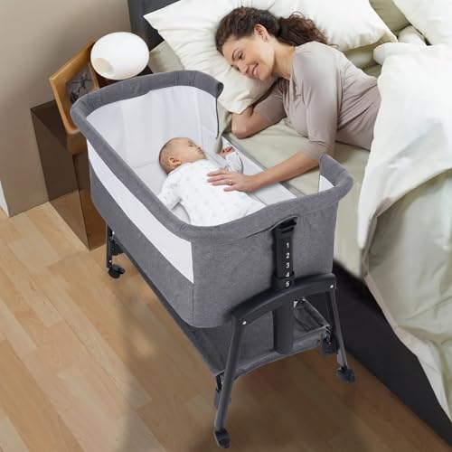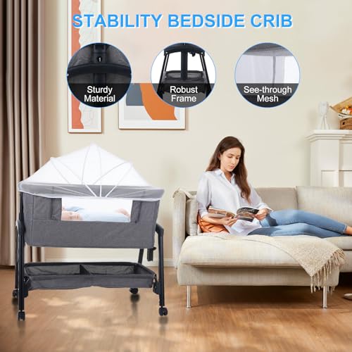 TRAVEL COMPANION: This bedside bassinet is designed for convenience, allowing for easy disassembly and assembly. It can be effortlessly placed in the back seat of a car when travelling, making it ideal for on-the-go parents
