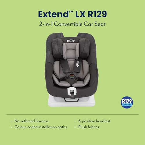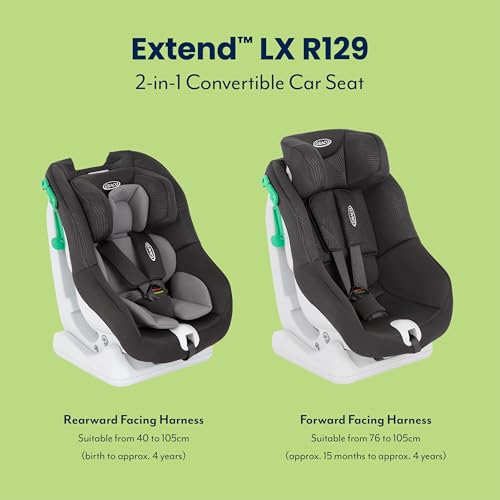 Specification: Graco Extend LX R129 Convertible Car Seat, Rearward Facing for Longer from Birth to Approx. 4 Years (40-105cm). Forward Facing from 15 Months to Approx. 4 Years (76-105cm), Midnight Fashion