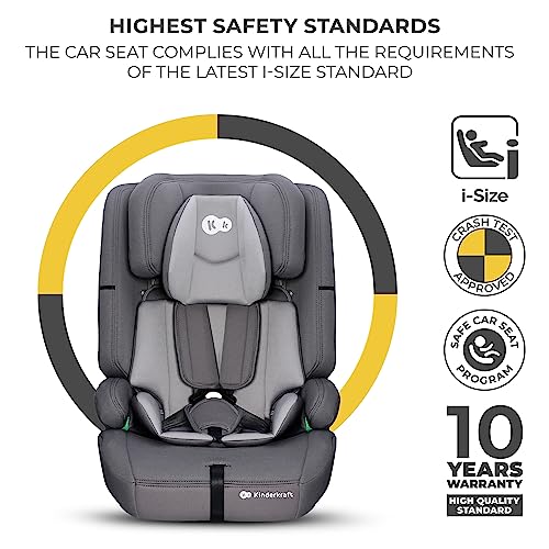 Kinderkraft Safety FIX2 I-Size 76-150 cm Car Seat, 15 Months – 12 Years, Booster Child Seat, Isofix, Top Tether, Adjustable Headrest, Group 1-2-3, 5-Point Safety Harness, Modular Insert, Gray
