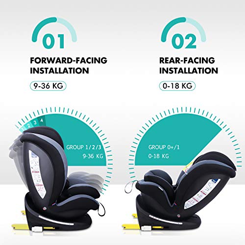 Specification: Reecle 360 Swivel Baby Car Seat with ISOFIX, Group 0+1/2/3 (0-36 kg), Approx. 0-12 Years (Black)