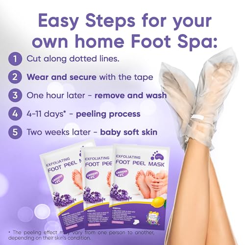 3 Pairs Foot Peel Mask, Exfoliating Foot Peeling Mask for Hard Skin, Callus Remover, Moisturising Socks for Foot Care, Repair Cracked Heel, Dead Skin, Foot Mask for Baby Soft Skin, Vegan – Lavender