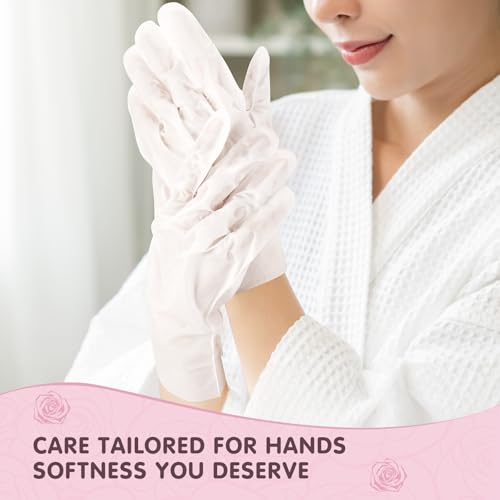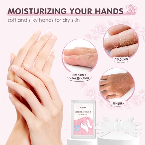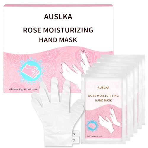 AUSLKA Hand Mask Moisturizing Glove 6 Pairs, Hand Care Moisturizing Gloves with Shea Butter, Hydrating Masks for Dry& Dead Skin, Men Women (Rose)