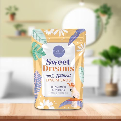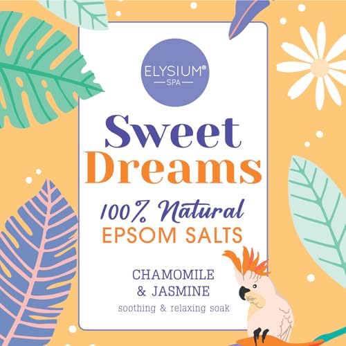 SWEET DREAMS: Elysium Spa Chamomile & Jasmine Epsom Salts, to soothe, relax and calm body and mind. Pefect bath before bed for a restful sleep. Each reselable pack contains 3 fragranced bath bombs
