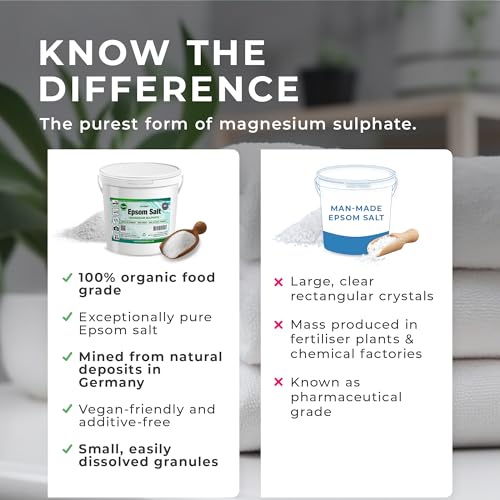 PURE EPSOM SALTS POWER – Sourced from natural magnesium sulphate deposits in Germany, experience the versatility of Grow Chem’s 100% EU quality epsom bath salts free from additives. Known for detoxing and relieving stress, it provides an effective, therapeutic solution for your well-being