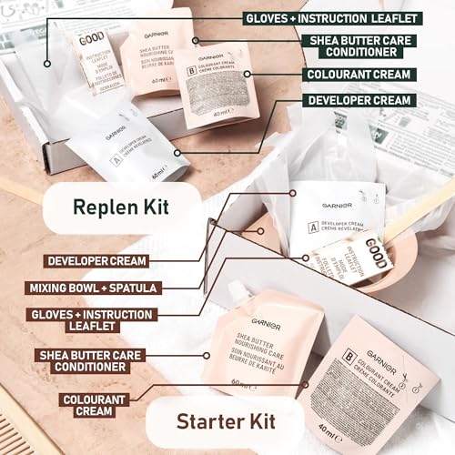 Change your hair colour for good with Garnier GOOD Permanent Hair Dye. Our 90% natural origin formula*, with no ammonia and enriched with nourishing Shea Butter, delivers our best colour yet; 8 weeks long lasting intense glossy colour, beautiful highlights and tones & up to 100% grey coverage. Experience a stress-free application with its non-drip formula and cocooning fragrance. 87% agree GOOD delivers long lasting beautiful colour!** Vegan***