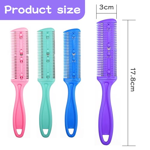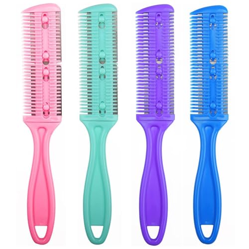 KIPTVO Double Sided Hair Cutting Razor Comb, Professional Hair Razor Comb Haircuts Cutting Tool for Salon or Home (Light Pink, Green, Blue, Purple)