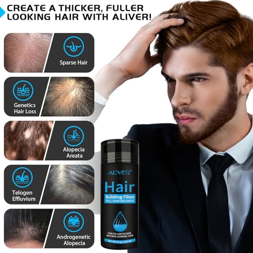 Hair Fibres,Professional Quality Fiber Hair Powder, Hair Loss Concealer for Thinning Hair, Instantly Conceals Hair Loss in 15 Sec,Best Hair Thickening Products (Black with Nozzle)