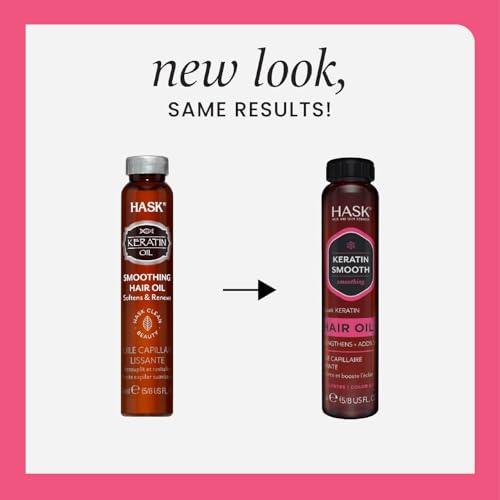 HASK Keratin Smoothing Shine Oil Vial for all hair types, colour safe, gluten-free, sulfate-free, paraben-free – 1 18mL Vial