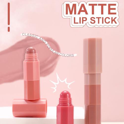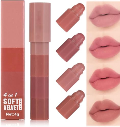 Moisturizing Nude Pink Lipstick Set – 4 Creamy Matte Shades, Long-Lasting & Highly Pigmented Lip Gloss in Mini Pen format. Hydrating Lip Makeup for Women & Girls. Perfect for Daily Wear (01#)