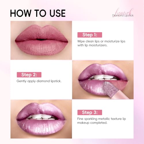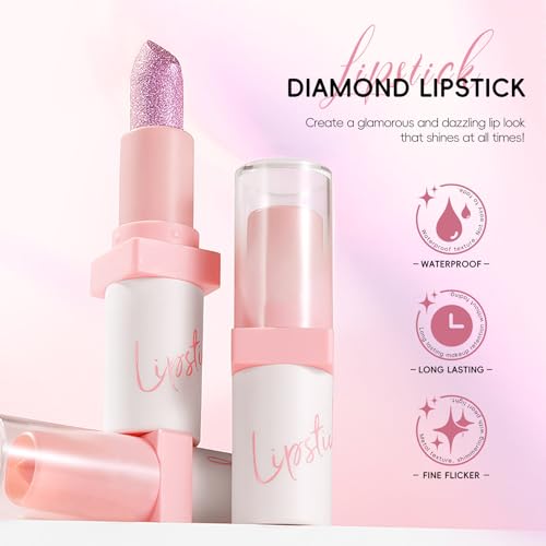Noerrors Metallic Pink Frost Glitter Lipstick, High Impact Shine Lipcolor, Transfer Proof Diamond Creamy Nude Light Pink Lipstick, Long Lasting Shimmer Non Stick Cup Lightweight Lip Makeup for Women