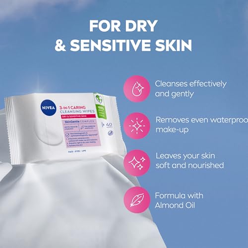 NIVEA 3in1 Caring Cleansing Wipes for Dry Skin – Caring yet effective plant-based cleansing wipes enriched with natural SkinGentle Complex