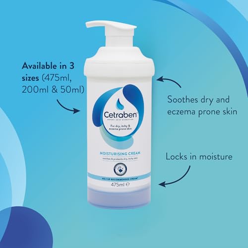 Cetraben Moisturising Cream, For Dry, Itchy, Sensitive & Eczema-Prone Skin, Soothe, Moisturise, Hydrate, & Protect, Dermatological Moisturiser,Daily Use on the Body, Fragrance Free, 1 x 475ml