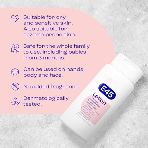 LONG-LASTING DRY SKIN CARE – E45 Lotion is a light, unperfumed lotion that can be used all over the body, including the face, to provide long-lasting care for dry and sensitive skin. It is a light daily moisturiser for dry skin that keeps your skin feeling soft and deeply hydrated. E45 lotion has been formulated to give deep moisturisation that lasts throughout the day.