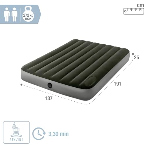 Multipurpose double inflatable mattress, size 137x191x25 cm (W x L x H), supports up to 272 kg