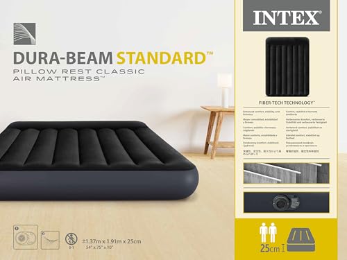 Intex Full Pillow Rest Classic Airbed w/Fiber-Tech RP, Inflated Size: 1.37m x 1.91m x 25cm (64148GB)