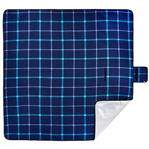 Amazon Basics Picnic Travel Blanket with waterproof backing, 200 x 200 cm (Rectangular), Blue/White, Kitchen