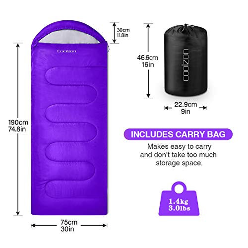 Coolzon Outdoor Sleeping Bag for Camping, for 3-4 Seasons, Adult Blanket, Small Packed Size, Ultralight Carry Bag, Soft, Thick and Warm, for Outdoor Camping, Travel, Hiking