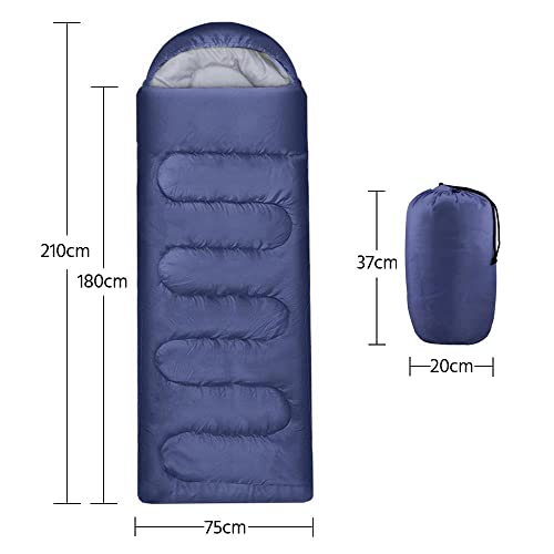 Size & Suitable temperature: The overall size of this sleeping bag measures 210cm long and 75cm wide, the hood is 30cm long. The recommended temperature rating is from 5°C to 20°C (depends on the surrounding environment and personal circumstances)