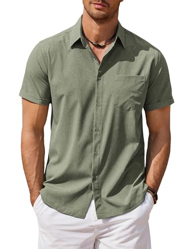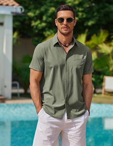 COOFANDY Mens Short Sleeve Casual Shirts Summer Beach Lightweight Stretch Shirts Regular Fit with Pocket