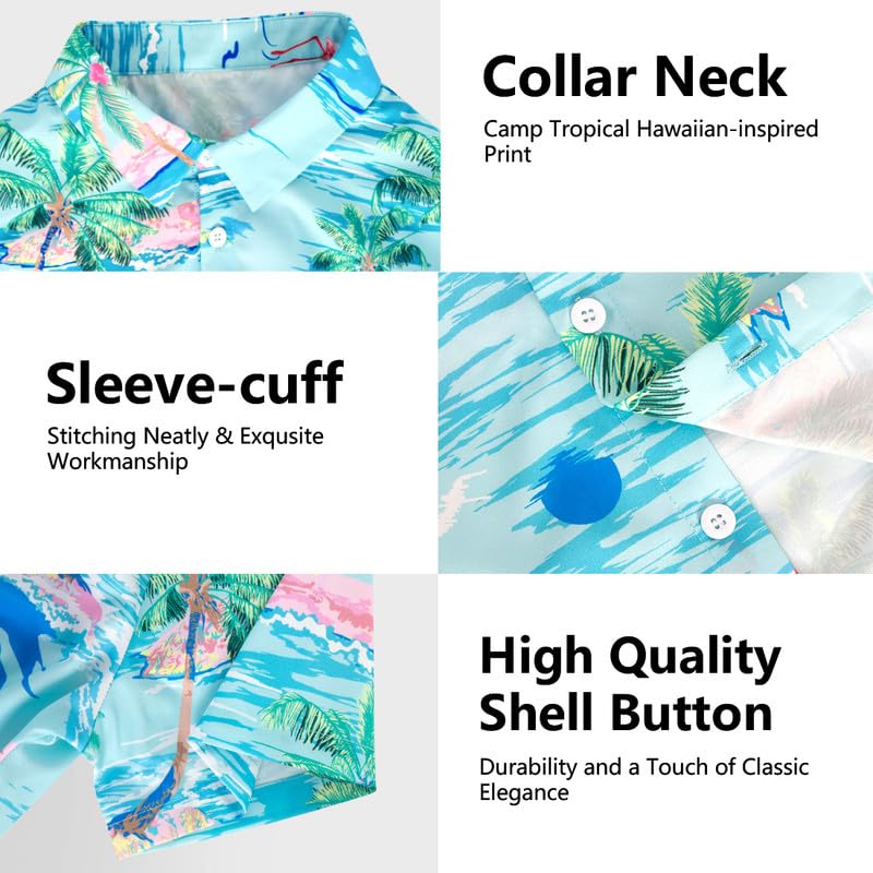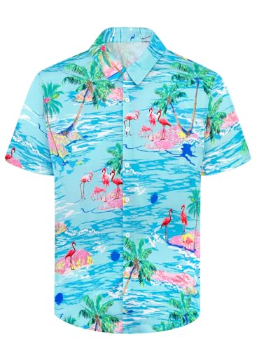 XiaoMoSha Mens Hawaiian Shirts Short Sleeve Wrinkle Free Button Down Summer Casual Shirt for Men Tropical Holiday Beach Funky Party Tops, S-3XL