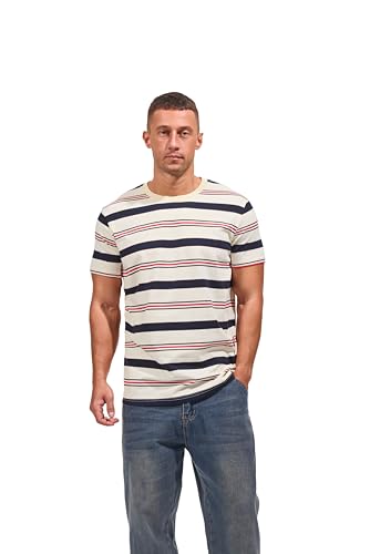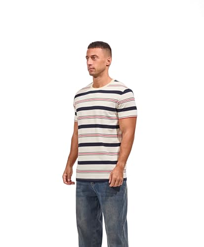 VEIISAR Men’s Crewneck Striped T-Shirt Soft Elastic Cotton Tees