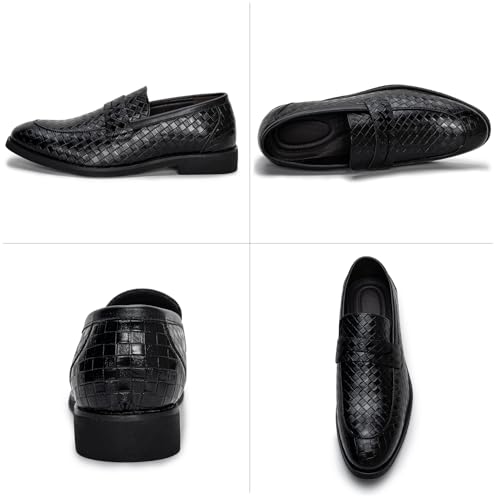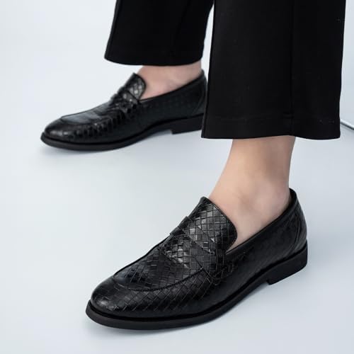 Ophestin Men’s Loafers Moccasins Weave Formal Dress Shoes Slip-On Driving Business Shoes