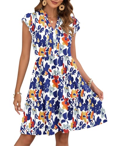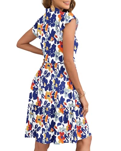 AUSELILY Women Summer Dress V Neck Ruffle Short Sleeve Ladies Dress Wrap Waist Casual Minidress with Pockets