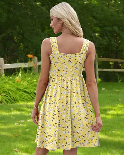 TIANZHU Ladies Dresses Square Neck Lightweight Boho Vacation Midi Dress Party Wedding Outfits S-2XL