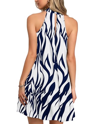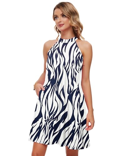 WNEEDU Womens Summer Dress Halter Neck Dresses Beach Cover-Ups Mini Sleeveless Sundress with Pockets