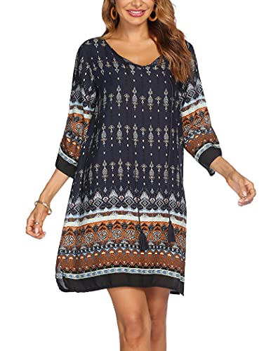 Zeagoo Women Dresses Bohemian Floral 3/4 Sleeve Summer Casual Beach Dress Tunic Dress for Ladies