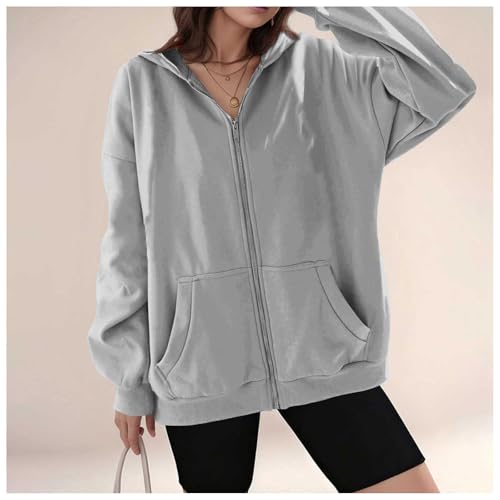 Couawaticy Zip Up Hoodie Women, Hoodies for Women UK, Ladies Jackets Full Zip Oversized Long Sleeve Sweatshirts Top Zipper Hooded Sweatshirt Lightweight Coat With Pockets