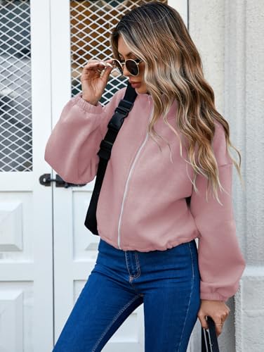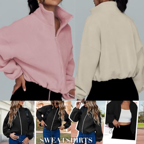 Famulily Womens Cropped Fleece Sweatshirt Long Sleeve Zip Up Crop Workout Tops With Drawstring