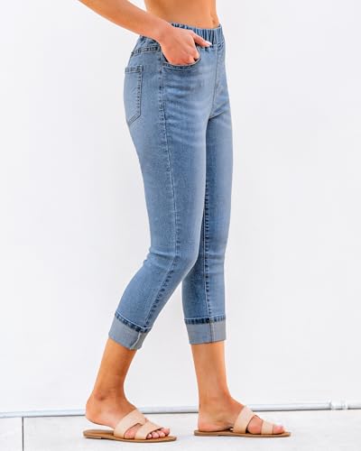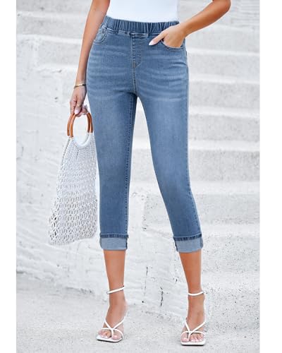 Roskiky Pull On Jeans for Women High Waisted Skinny Capri Pants Trendy Stretch Denim Cropped Jeans Crop Jeggings Capris