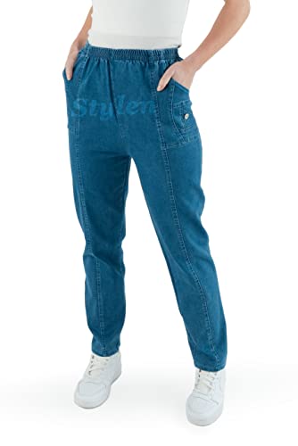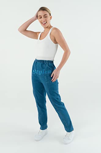URBAN STITCH Women Jeans Ladies Stretch Trousers High Waist Rise Elasticated Pull On Straight Leg Denim Soft Pants Plus Size Casual Wear